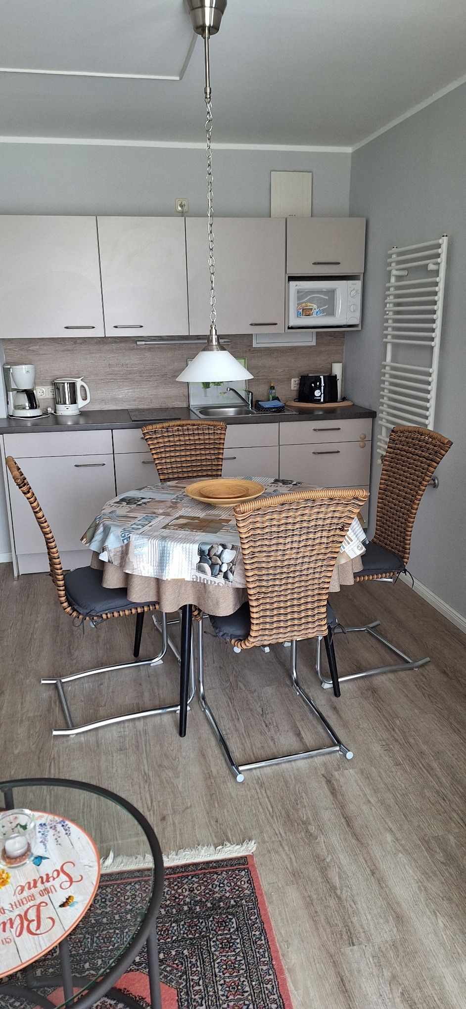 - Küchenzeile mit Mikrowelle, Kühlschrank, 2-Platten Ceranfeld-Herd, Kaffeemaschine, Wasserkocher, Toaster